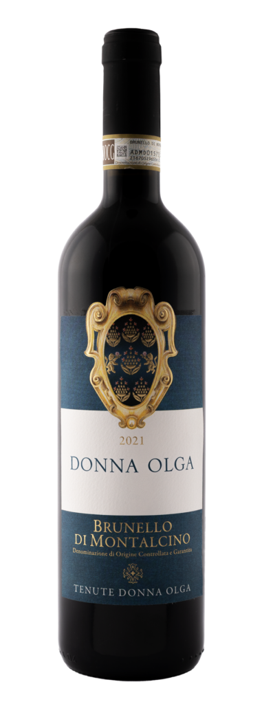 Brunello di Montalcino Donna Olga has a deep ruby red colour which turns a garnet red with age. Its bouquet has outstanding character with hints of black cherry, blackberries, raspberries, violet, liquorice, vanilla and a slight accent of oyster shells. On the palate it reveals a dry, warm, velvety flavour, rich in substance and noble pedigree, ending with a warm note that lingers persuasively.